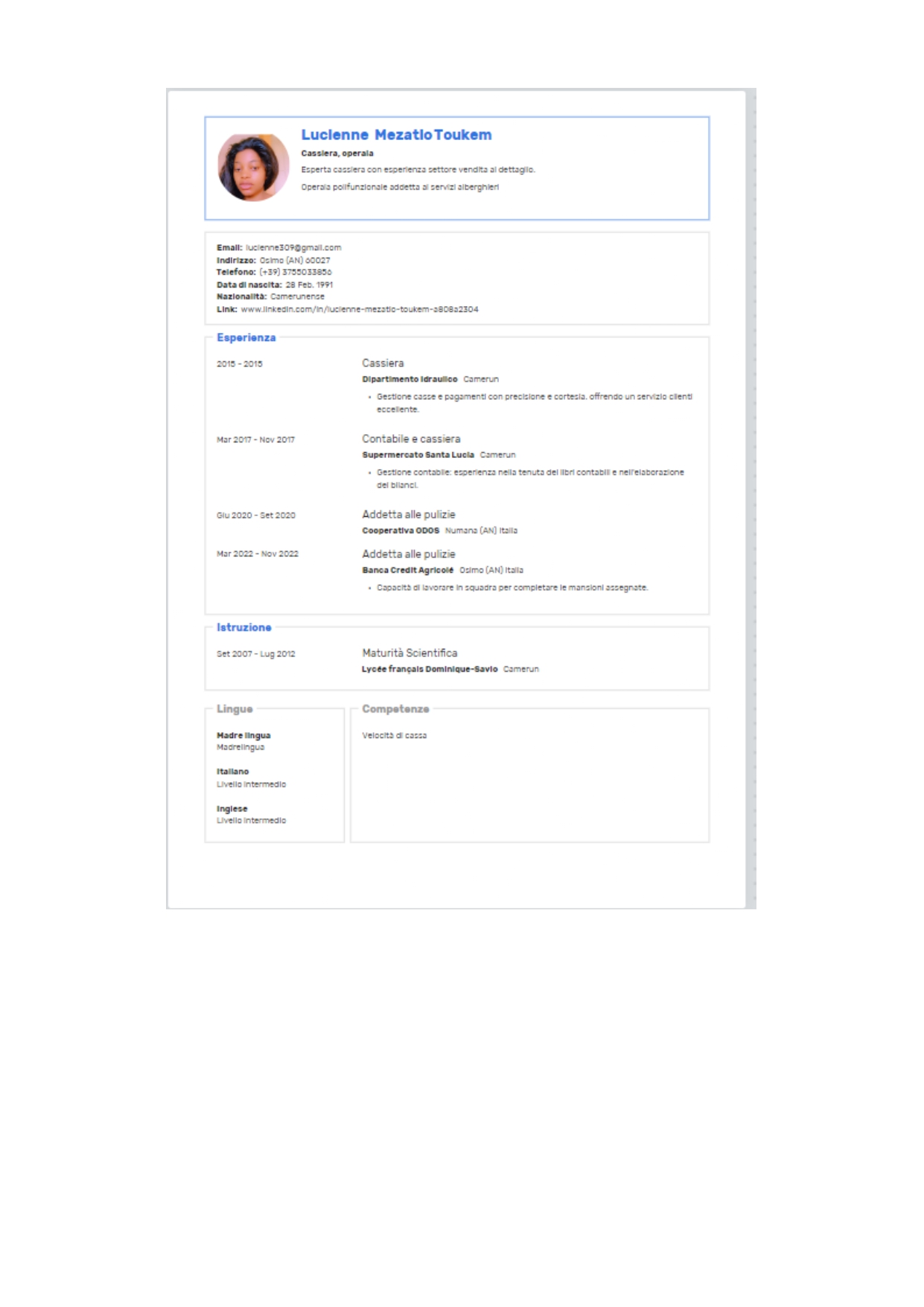 Cerco lavoro c/o strutture alberghiere di Ancona